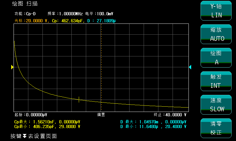 主要用于測試半導體器件PN結的勢壘電容在不同偏壓(V)下的電容量(C)ZX38A-CV半導體C-V特性測試儀除了可以連接電腦上位機軟件掃描分析功能外,還提供在儀器大屏液晶顯示器上直接顯示C-V掃描曲線分析功能。這樣客戶不再需要為每臺儀器配置一臺電腦。這種方式既保證了測試效率,又降低了測試成本、還方便客戶在生產線上使用。還可以把儀器屏幕上顯示圖形和測試數據直接拷貝到U盤。